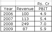 • The operating performance of the company for the past few years has not been very encouraging, as follows:
